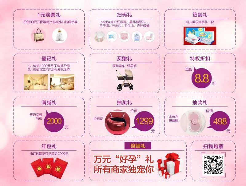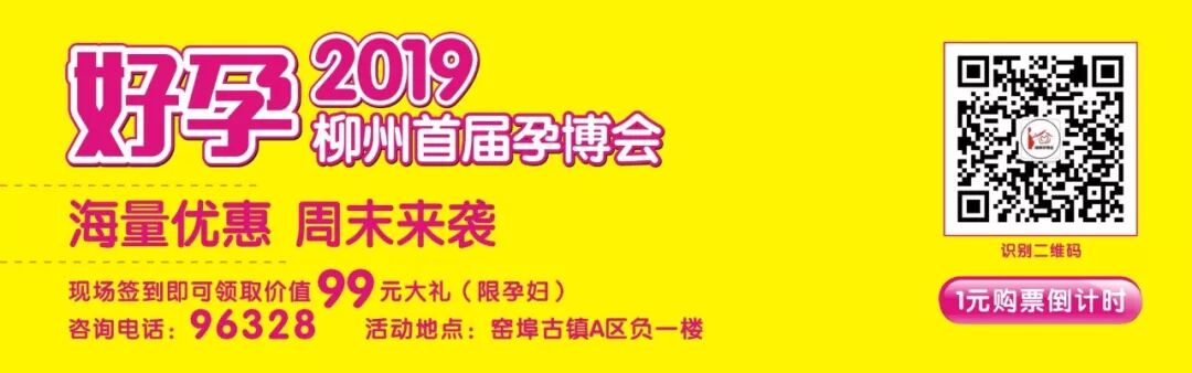 2、现场签约均可获得价值998元豪华童车一辆;3、参与现场抽红包赢大奖活动,最高可获得3000元现金红包; 温馨提示 如果你还没有报名,赶紧扫描二维码1元购票关注“柳州孕博会”线上购票,一张门票,全家通用。